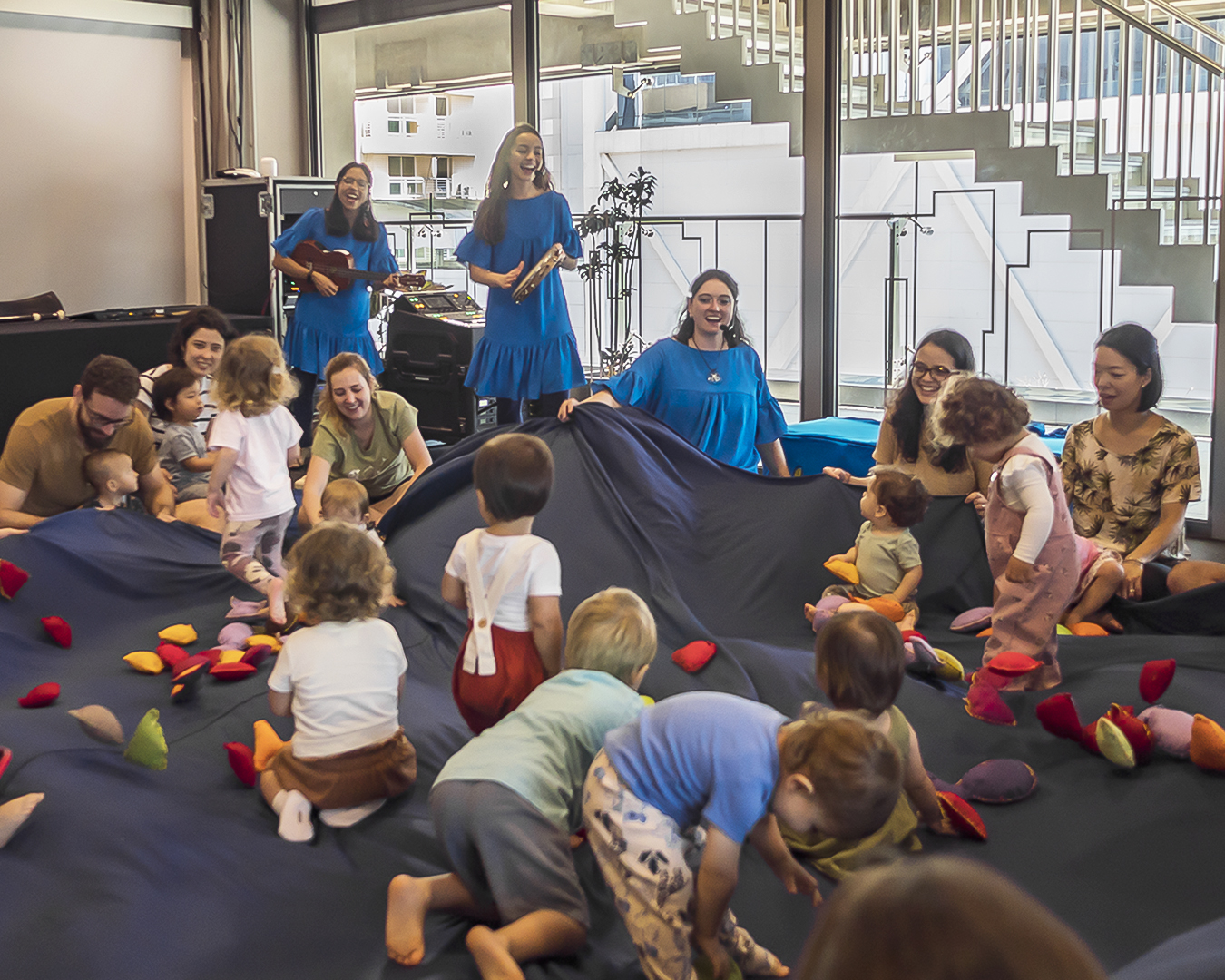 Cada encontro é um convite a mergulhar — corpo e imaginação — num tempo onde o brincar é sagrado e a música, infinita. Cuidamos de cada detalhe como quem semeia: para que as crianças e suas famílias encontrem aqui um chão fértil de vínculos, poesia e descobertas.